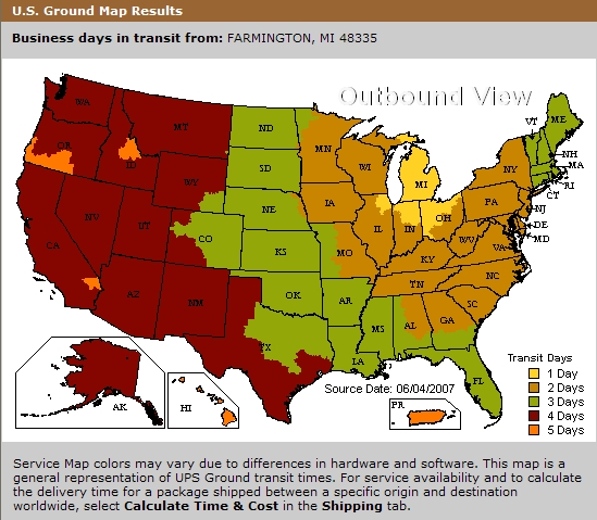 - UPS Ground: 1~5 Business days map